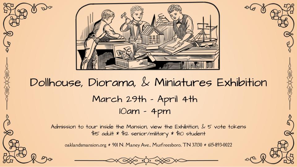 If you are a dollhouse, diorama, or miniatures enthusiast, you don’t want to miss participating this wonderful tradition. The Exhibition will be taking place Sunday, March 29th – April 4th, 2026 at Oaklands Mansion and Maney Hall and open to guests 10am – 4pm