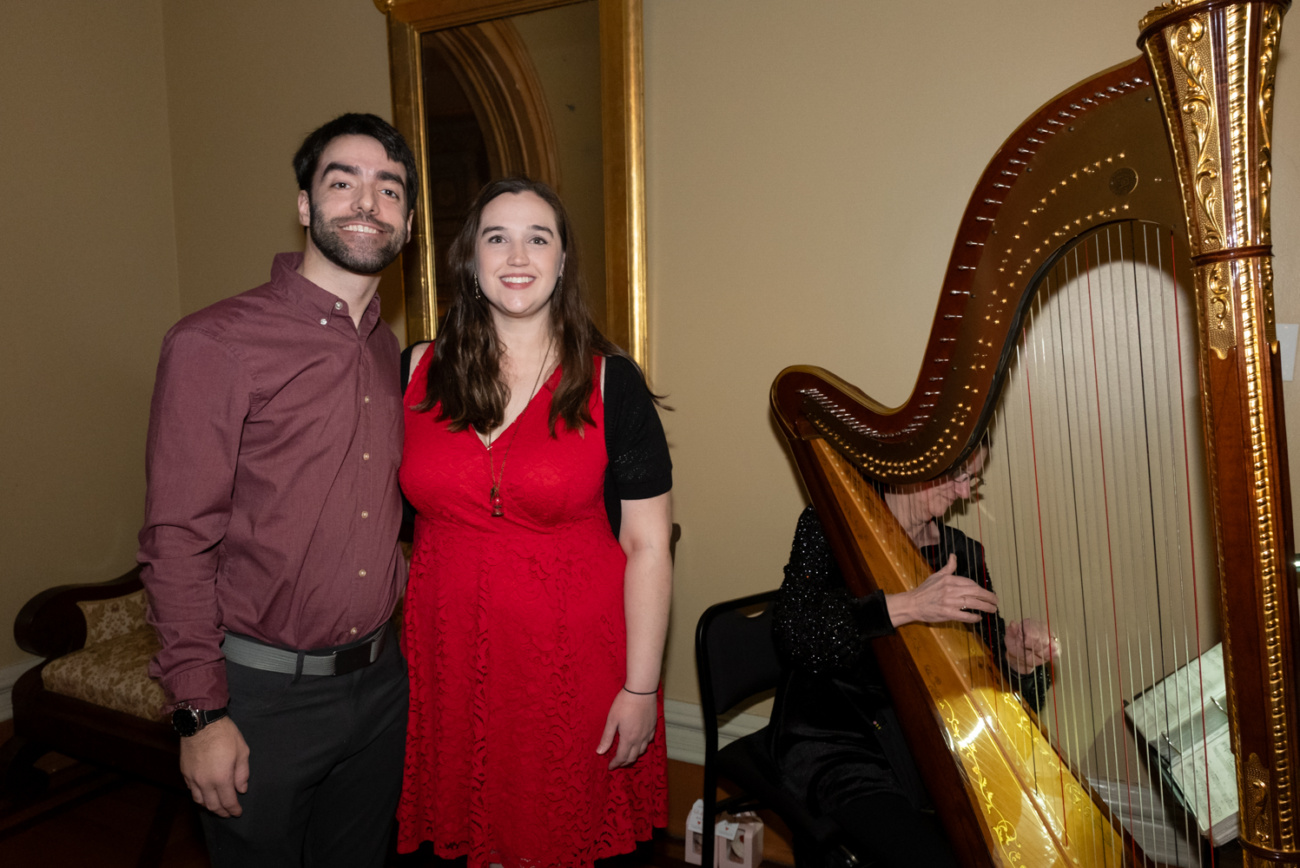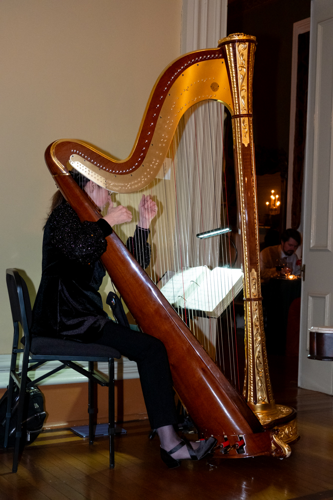 Guests may arrive anytime Saturday, February 14th, starting at 5:00 PM, to enjoy dancing and cocktails in Maney Hall. At your reserved seating time of 5:00 PM, 6:30 PM, or 8:00 PM, you will be greeted at the front door of Oaklands Mansion by the ethereal sounds of harp music played by Phyllis Taylor Sparks. A staff member of Oaklands will guide you to your table, and dinner will be served by professional waitstaff.